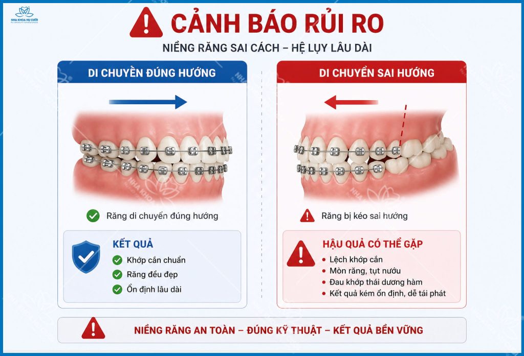 Niềng răng sai chỉ định hoặc đẩy nhanh quá mức có thể dẫn đến sai khớp cắn và ảnh hưởng chức năng nhai.